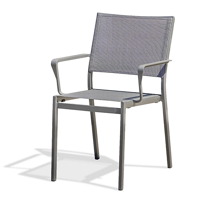 Le fauteuil de jardin STOCKHOLM en textilène et aluminium gris anthracite est empilable.